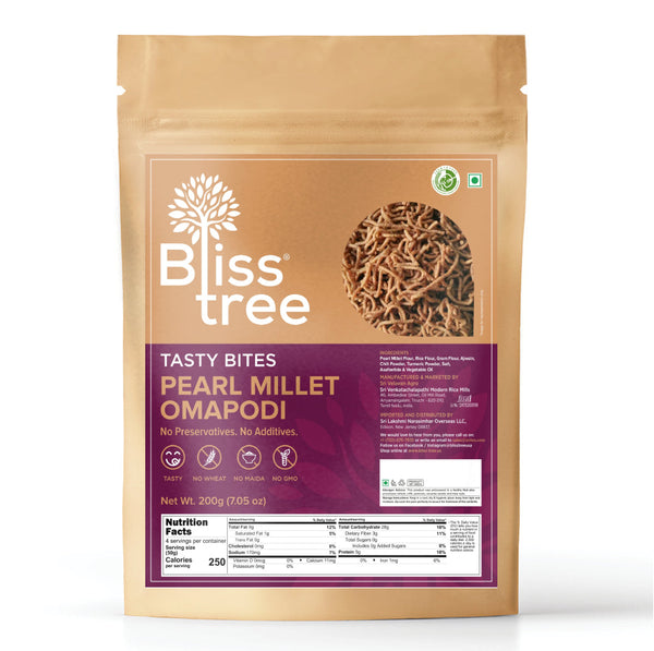 Kambu Omapodi aka Bajra Sev is the ultimate Tea-time savory delight like none other. Prepared with the perfect blend of Pearl Millet Flour, Rice Flour and Gram Flour and seasoned...