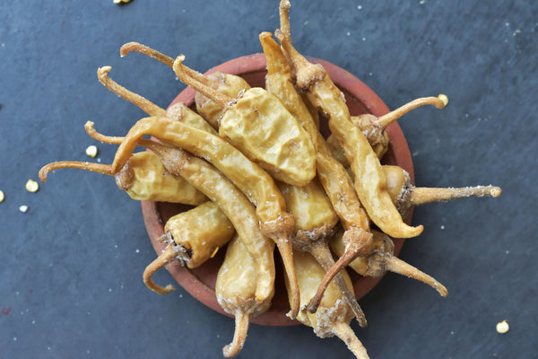 Mor Milagai is a delicious crisp chilli which is marinated in yogurt and sun-dried. Best enjoyed with any rice varieties.